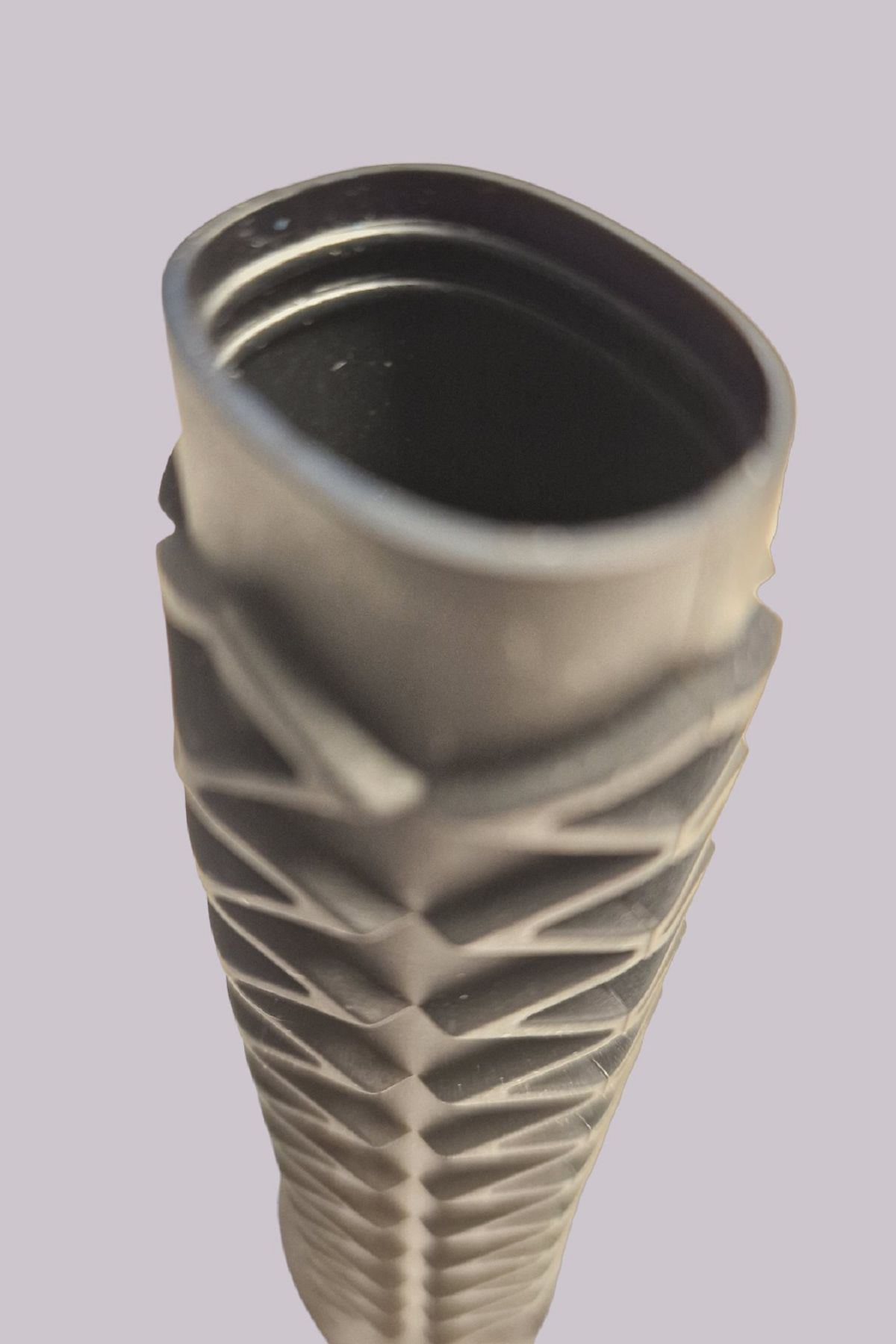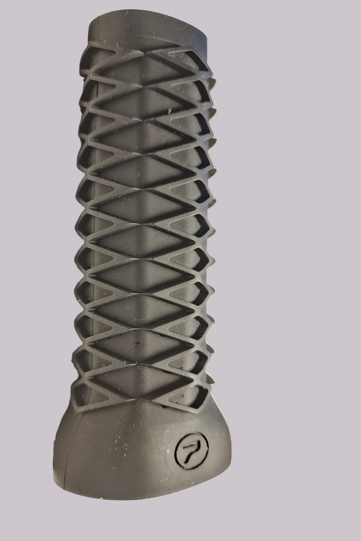 Una nuova impugnatura per padel in silicone flessibile nero. Realizzata con un motivo a M ben studiato per una migliore presa e per attenuare le vibrazioni. 2 funzioni. Montaggio con il logo 7 rivolto in avanti, così da offrire una presa rotonda. Ruotando il logo 7 di circa 20 gradi, l'impugnatura diventa una presa quadrata di controllo.