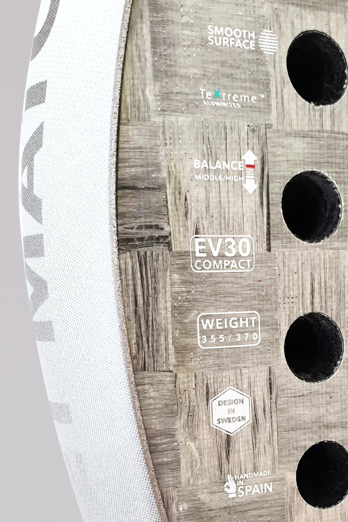 As a core, you will find that the compact EVA30 hard also creates good control in front of the net. The hole perforation pattern is not casual or just to look good. The holes are placed in a rounded shape with a little less holes towards the middle, which gives it a larger sweet spot and at the same time gives a trampoline effect that helps you with speed.